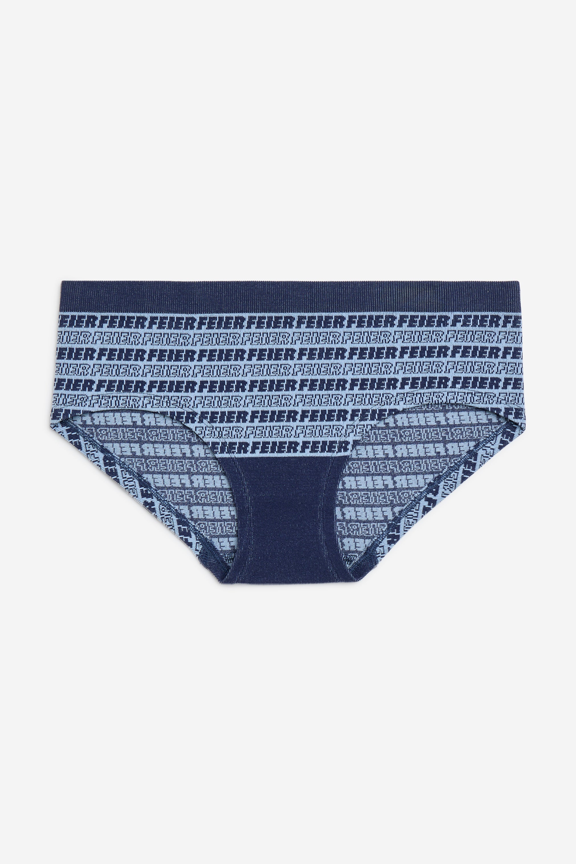 Pants on Feier! Scoop up this fun, soft, ribbed hipster with a bold knitted logo pattern.